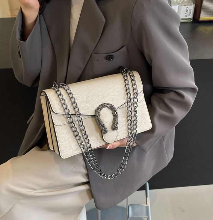 - Features a sophisticated metallic lock detail on the front, adding a unique, elegant touch to the overall design.