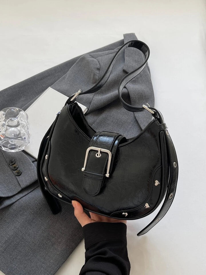 Studded Decor Dumpling Crossbody Bag