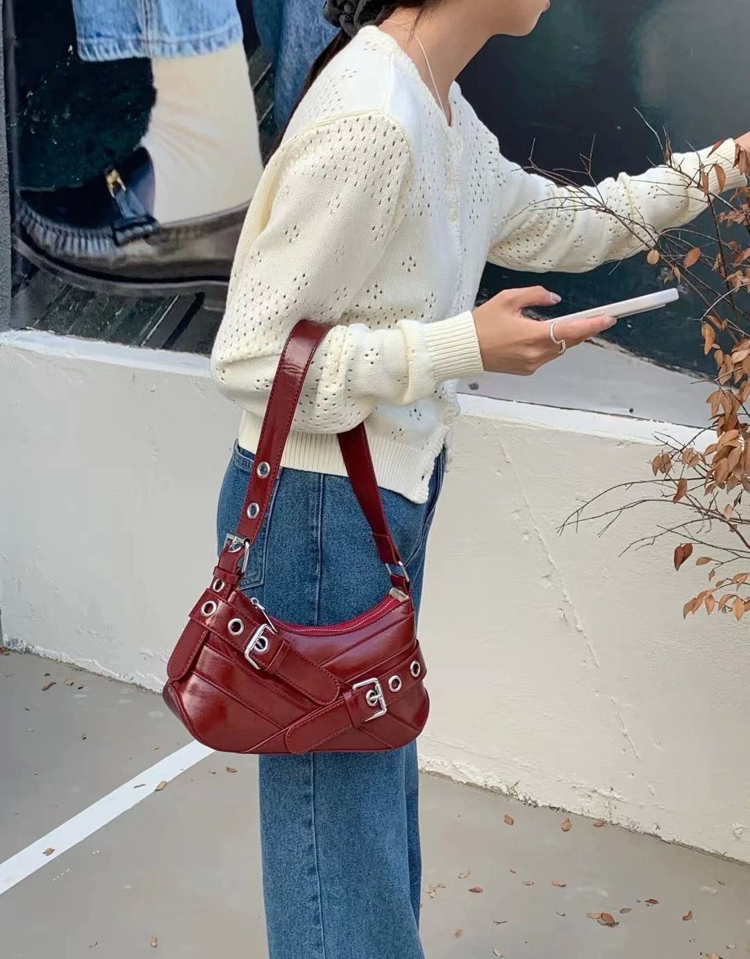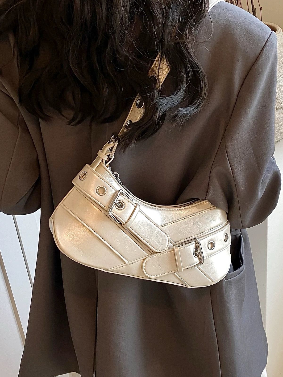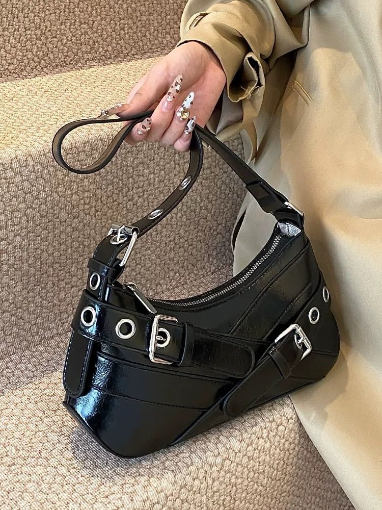 Y2K Gothic Style Metal Decor Shoulder Or Handbag For Women