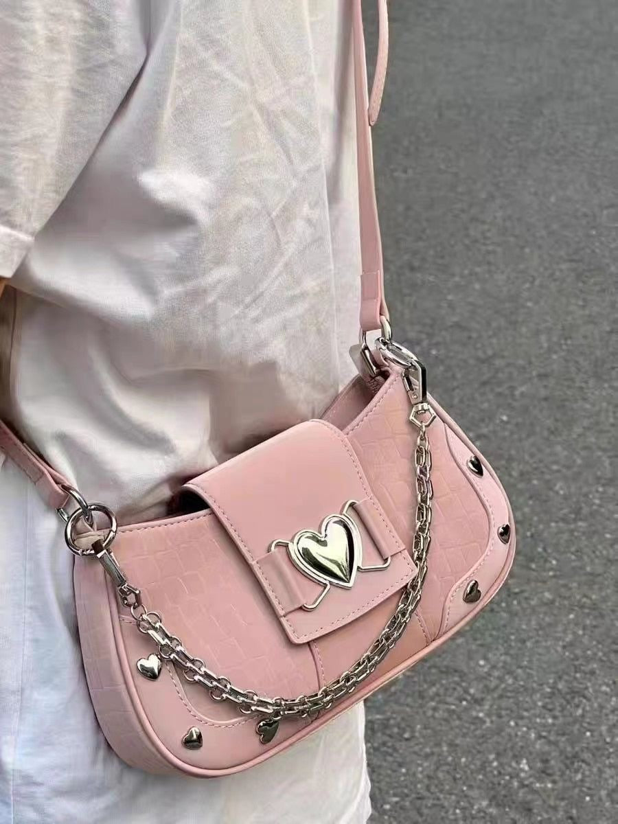 Y2K Star Decor Pink Shoulder Sling Bag With Two Belts